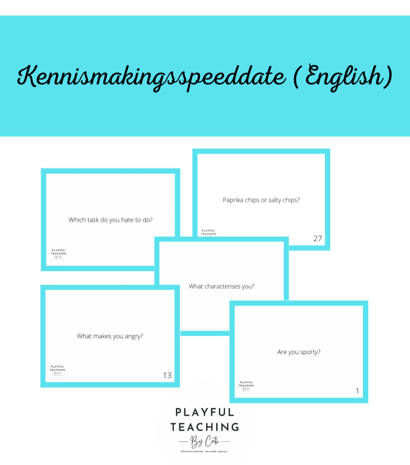 In dit bestand zitten er 30 kennismakingsvragen. Ideaal voor een speeddate. Deze kaarten zijn in het Engels.